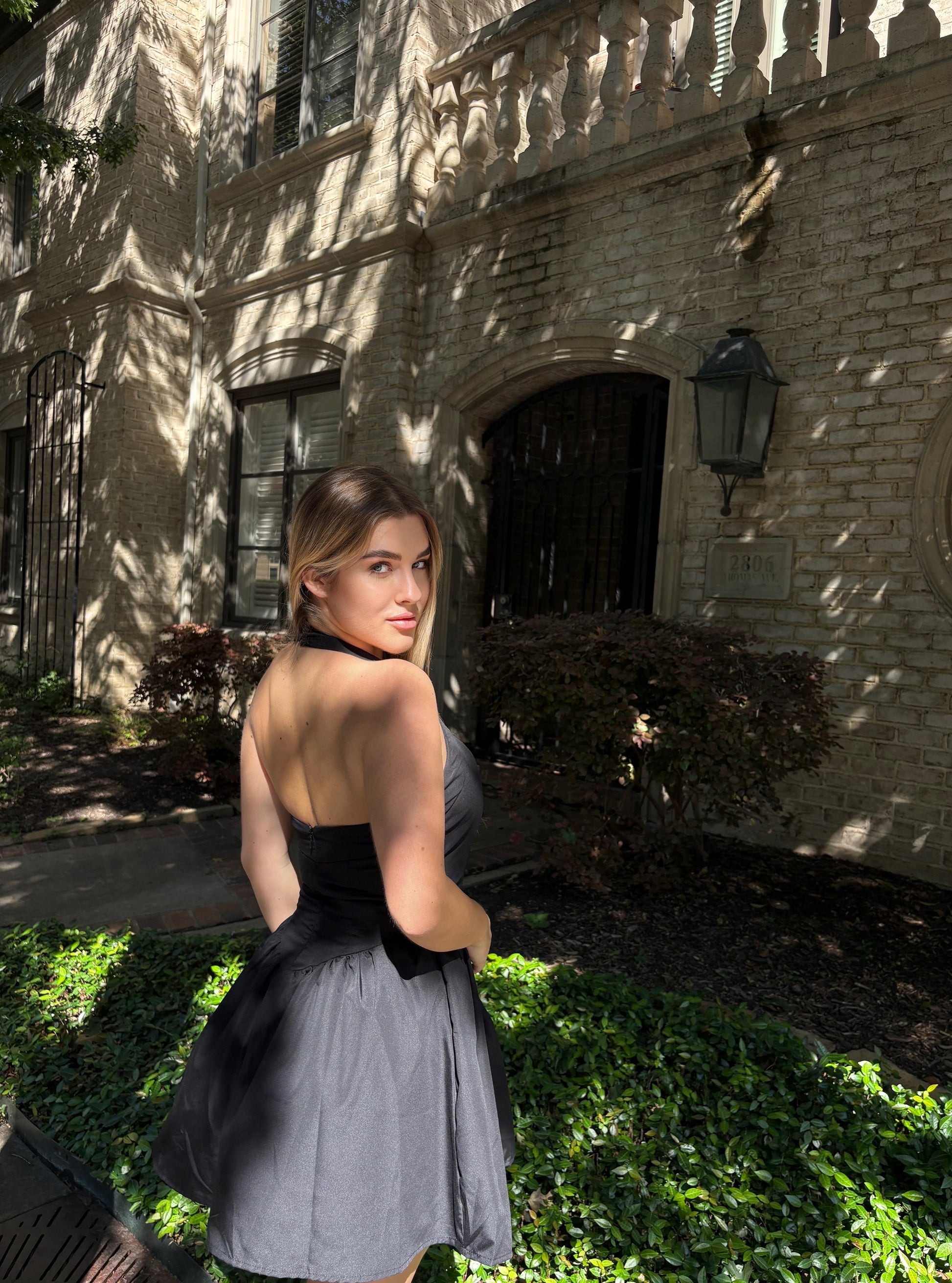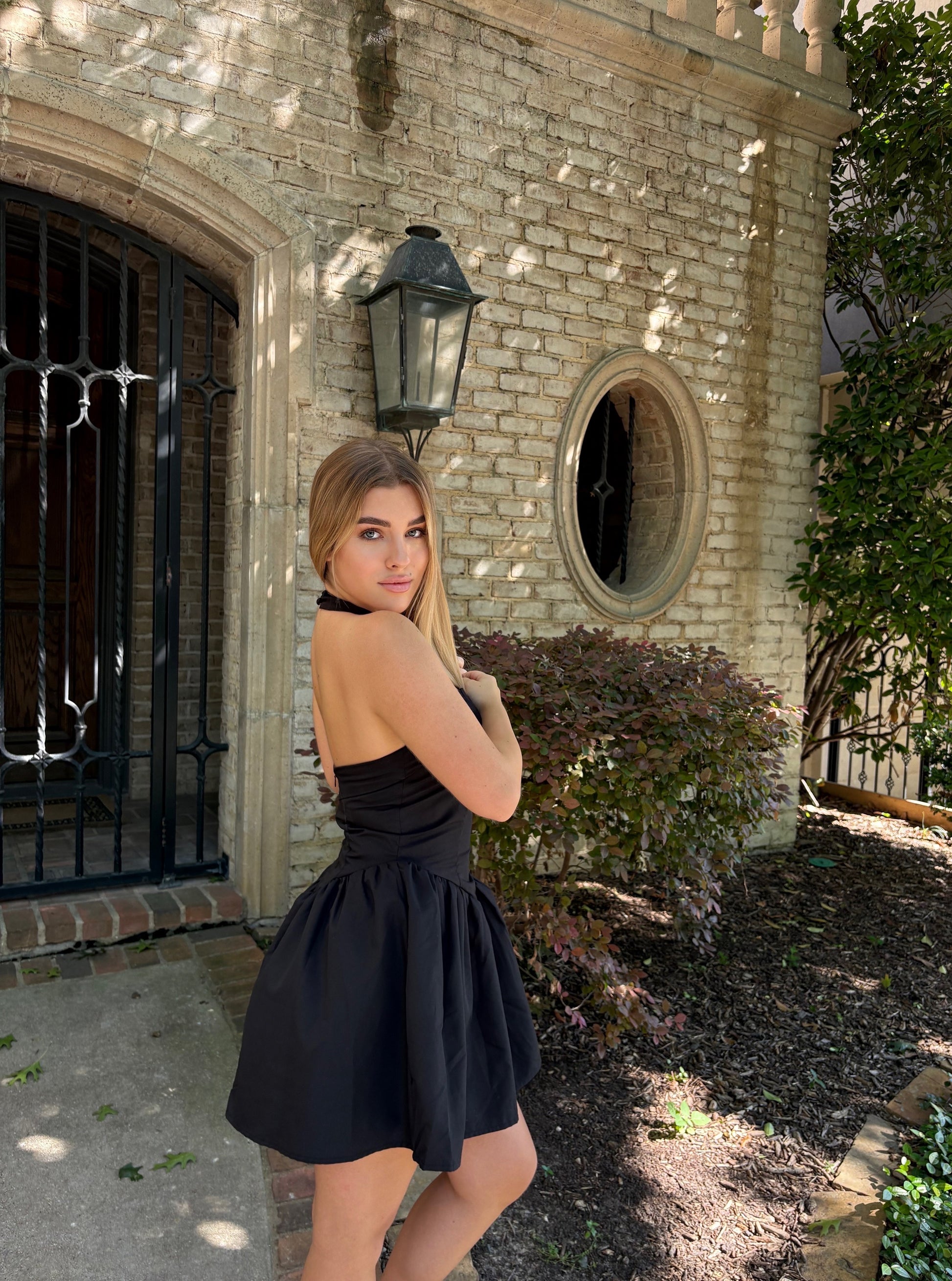 Perfect for a chic and playful look, the Bella/Bianca mini dress blends elegance with comfort. Featuring a square neckline and backless halterneck design, this dress creates a flattering, sleek silhouette. The bubble hem, supported by a built-in petticoat, provides a voluminous, structured shape. Whether dressing up for brunch or down for a sunny outing, this mini dress is the ultimate choice for a stylish and effortless look.
